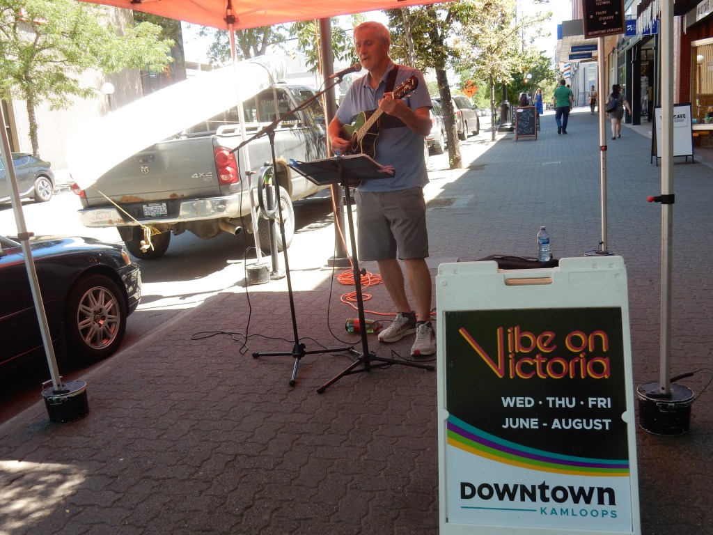 Downtown, the Vibe on Victoria music series continues. Generally there are solo acts or duets. On July 5 guitarist, vocalist Frank Stofanik played an eclectic set of both serious and fun, great tunes. The fun tunes included Brian Hylands summer classic “Itsy Bitsy Teeny Weeny Yellow Polka Dot Bikini,” and Buddy Holly’s” Peggy Sue.” The more serious, although generally not viewed in that vein, was Tennessee Ernie Ford’s “16 Tons.” The song where-in a man laments that he has “sold his soul to the Company store.”