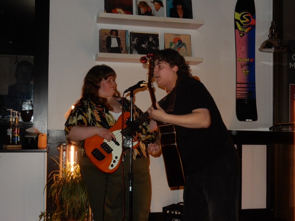 Next up was Mike. He used his 4 string tenor guitar and covered Blue Rodeo, The Eagles and Kenny Wayne Shepherd’s Blue on Black. The only trio, Dirty Lizards. consisted of Toby, Kianna and Benji. One of the men sang vocals, one played guitar and sang. Kianna played bass and sang. After a few songs the lead vocalist left. The remaining duo did a cool version of the Talking Heads hit, Psycho Killer.