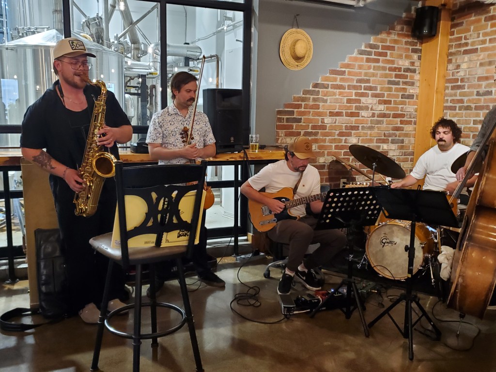 Iron Road Brewery hosted their occasional Sunday jazz show on August 17. The talented, house band consists of Aaron MacInnis on guitar, Stefan Thordarson on violin, Alex Ward on his old, beautiful upright bass and Jared Wilman on drums.