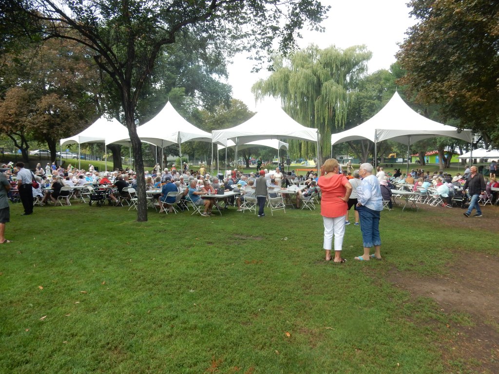 The 2025 edition of the Annual Seniors Picnic was held on August 29 at the east end of Riverside Park. The event was well attended. There were games, an aerobic class, chair yoga and of course, food. There were bottles of water, hot dogs with all the fixings, potato chips, and fruit for all. The tables were served by members of the City Council, our Member of Parliament and a few other helpers.